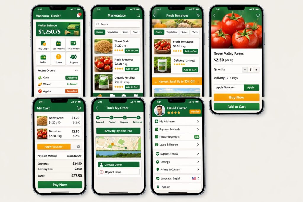 With Agronah, farmers can manage their farms, access crop and livestock advice, receive localized weather alerts, scan crops and animals with AI, and connect directly to agronomists, veterinarians, transporters, and input suppliers. The same platform powers produce trading, service bookings, digital payments, delivery coordination, cooling access, and sustainability reporting so users can move seamlessly from production to storage and then to market.
